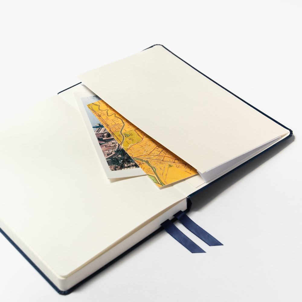 A stylish A5 desk companion ideal for writing & daily musings. Lovingly designed in Melbourne by Zetta Florence with fountain pen friendly paper, satin ribbon markers and a handy gusseted pocket in the back.