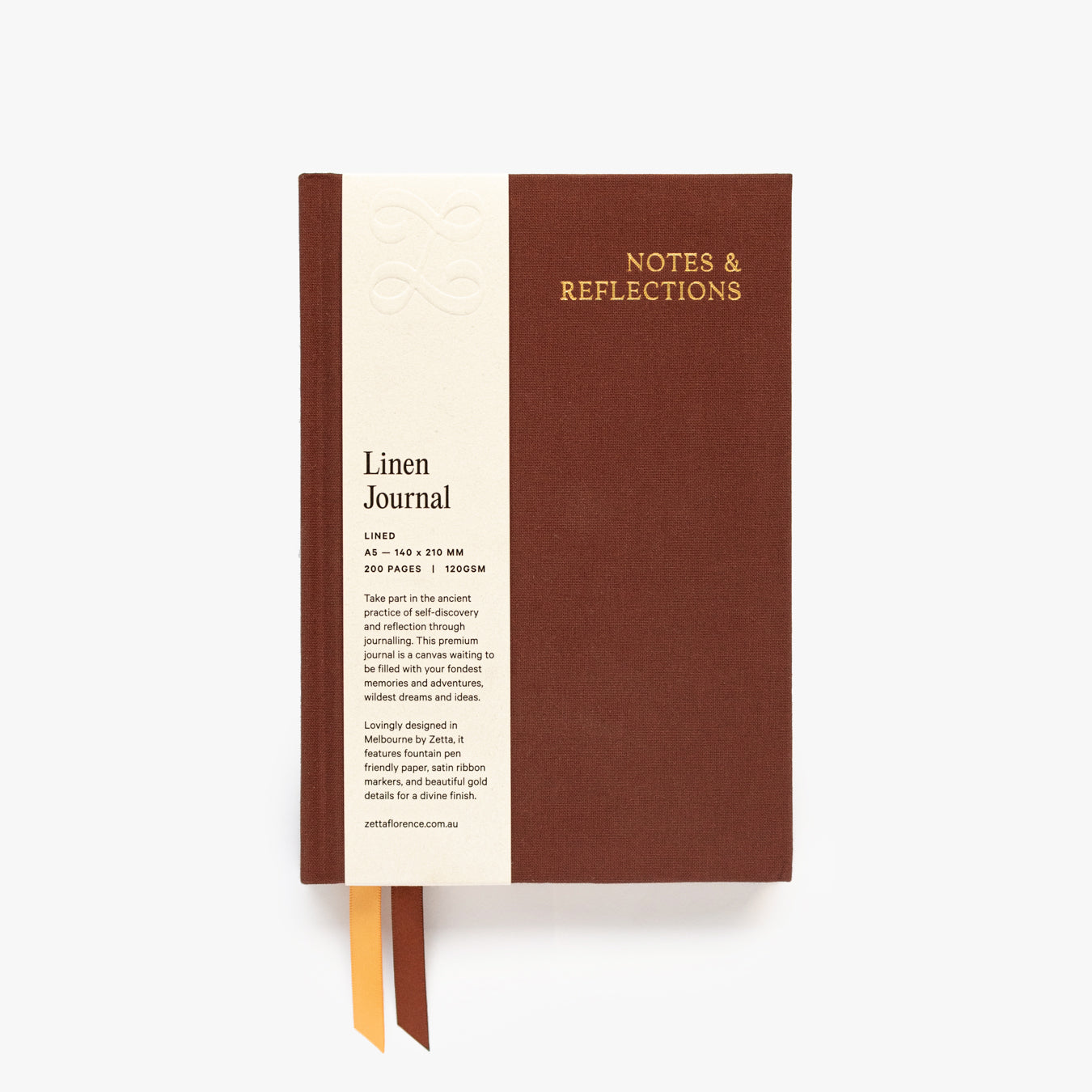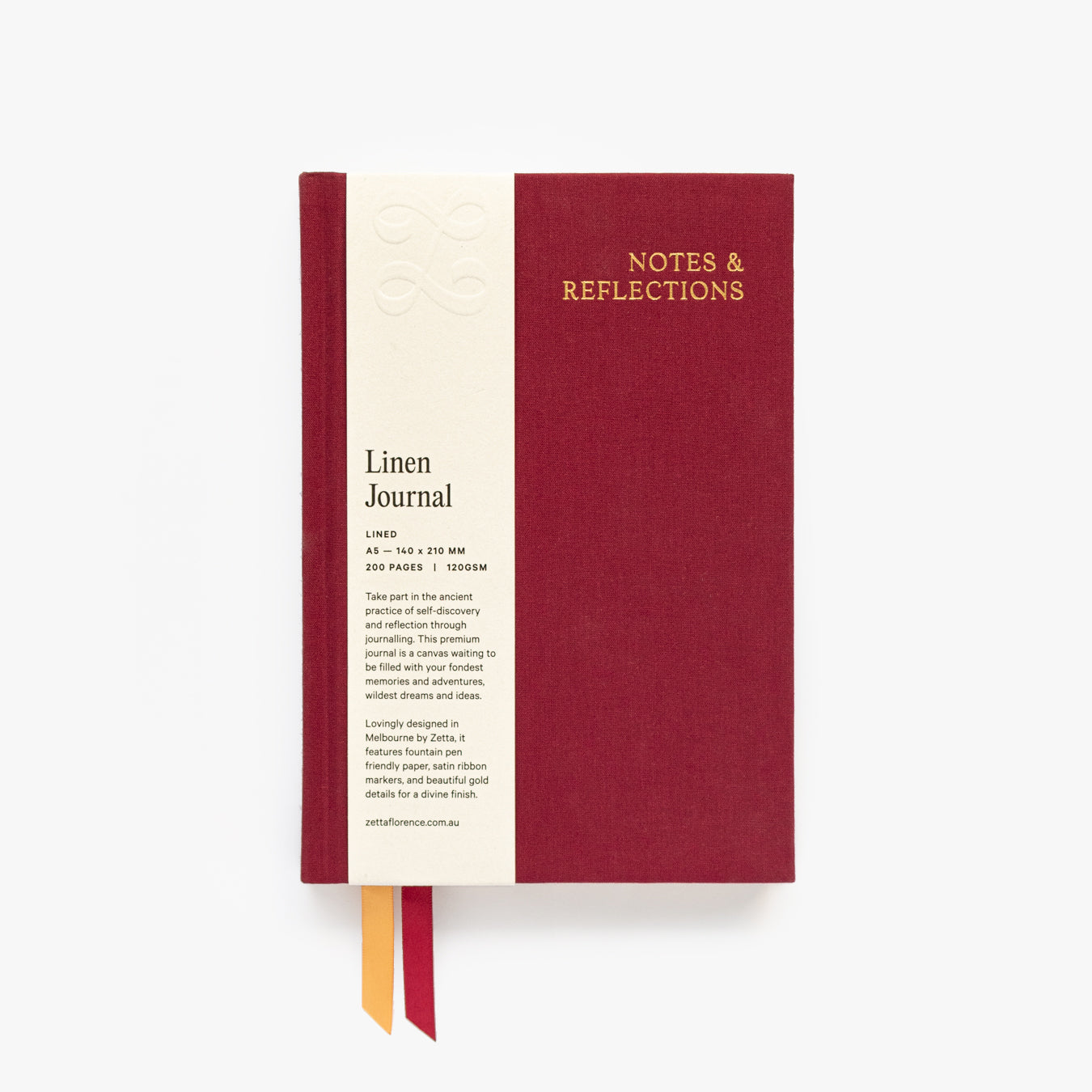 Take part in the ancient practice of self-discovery and reflection through journal writing. This luxurious A5 linen bound journal is a canvas waiting to be filled with your fondest memories and adventures, wildest dreams and ideas. Lovingly designed in Melbourne by Zetta Florence.