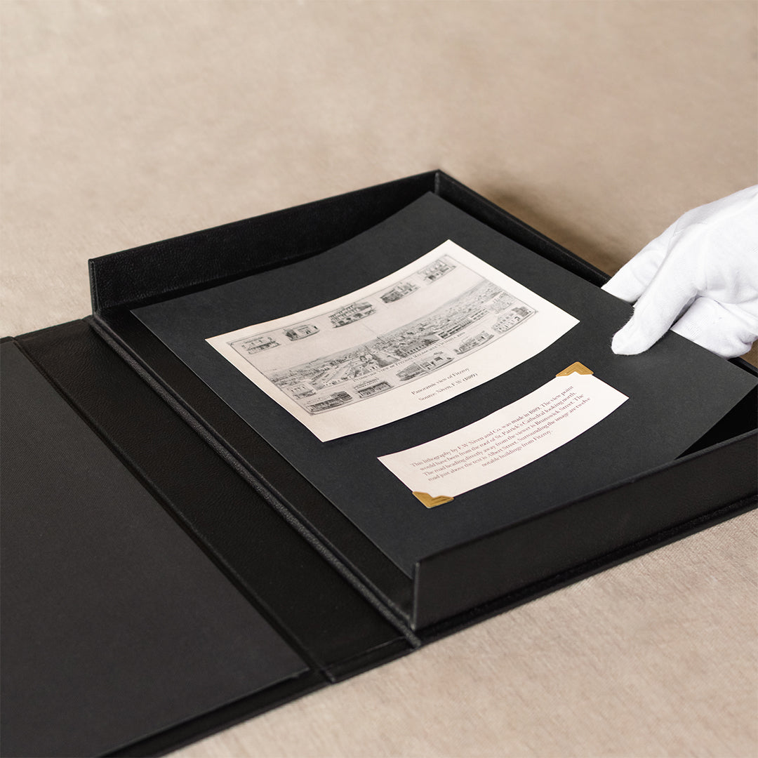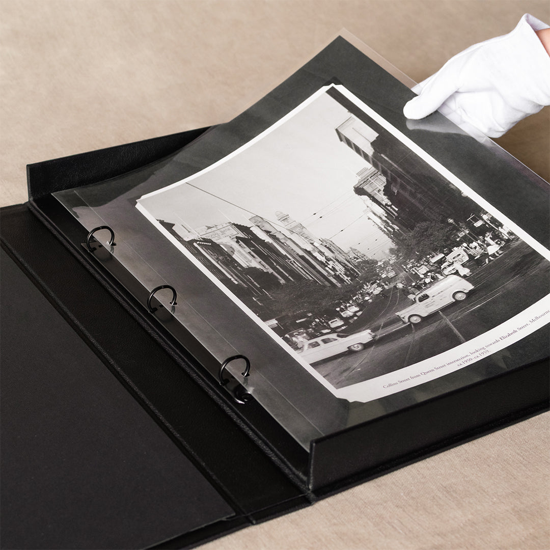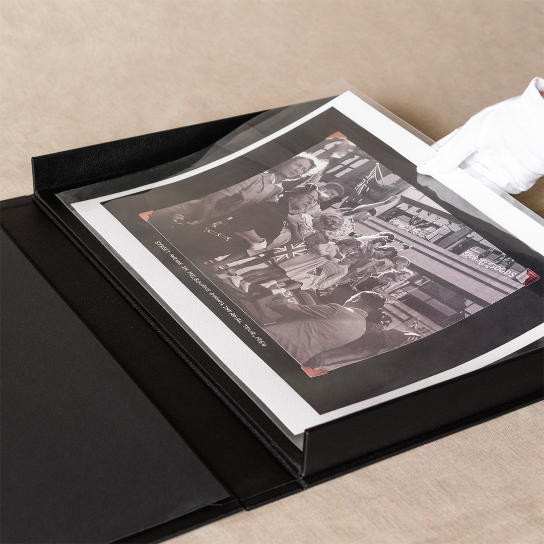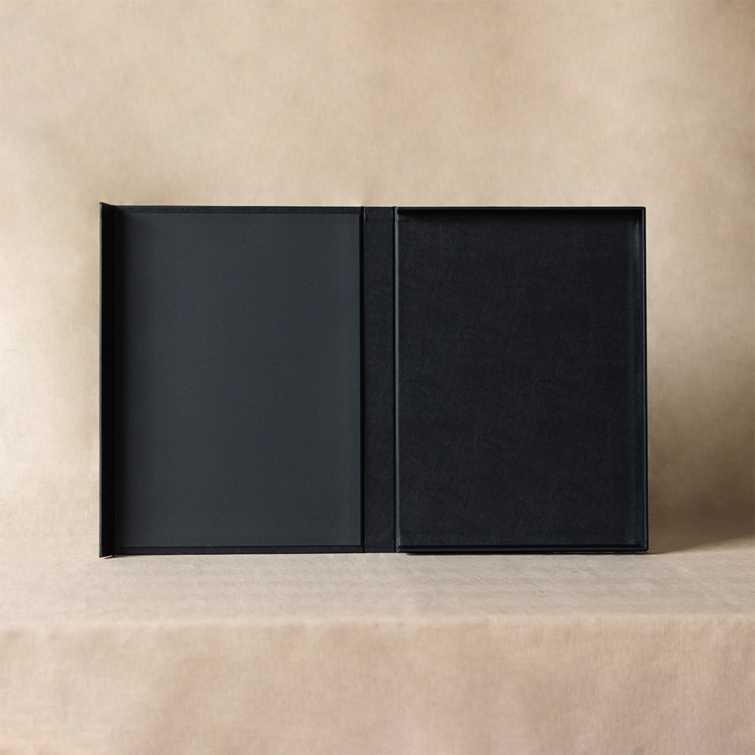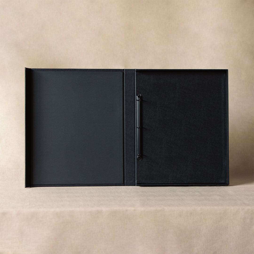 Crafted in our classic black, the exterior is wrapped in a hard-wearing, vegan leather style finish that pairs durability with timeless elegance. With generous capacity and thoughtful construction, these portfolios are ideal for preserving, protecting and presenting your work, whether it’s an artist’s folio, a professional archive, or treasured family history.